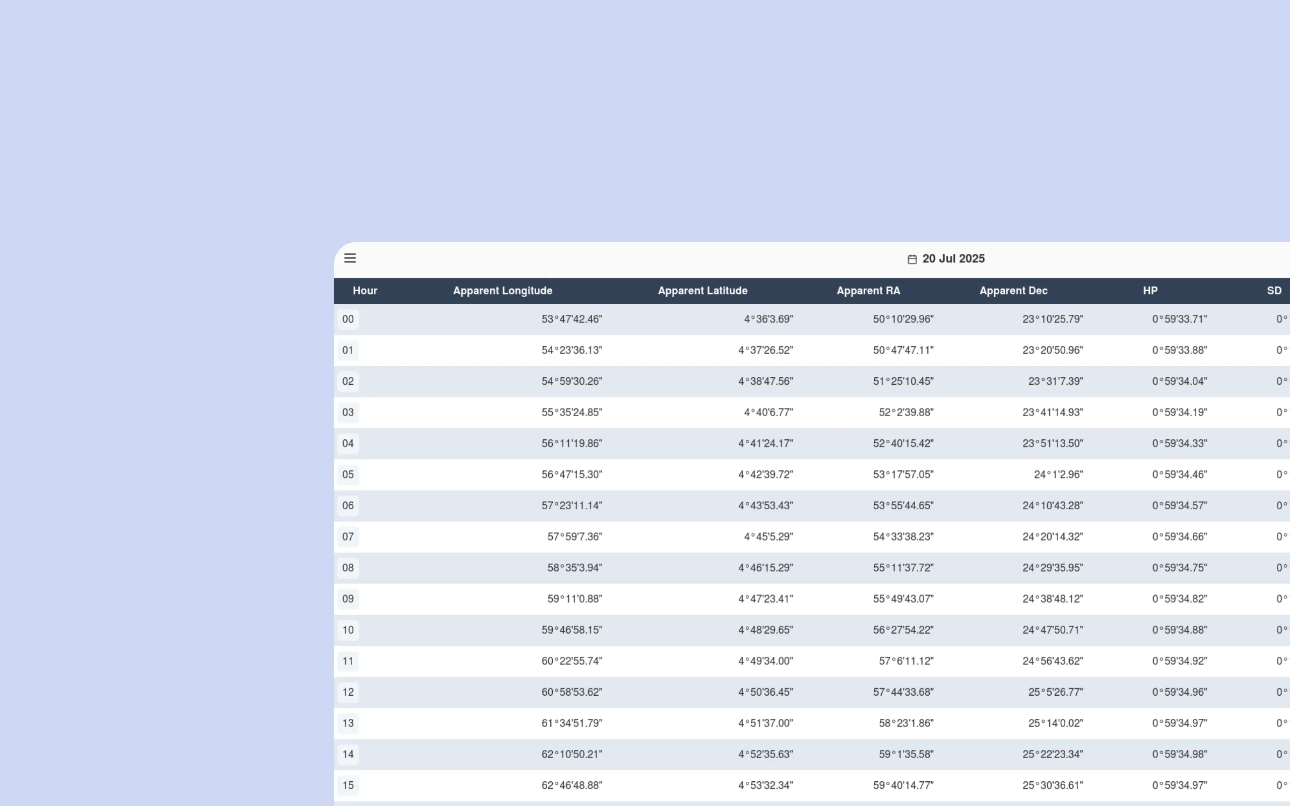 Moon-Sun Interactive Ephemeris Data